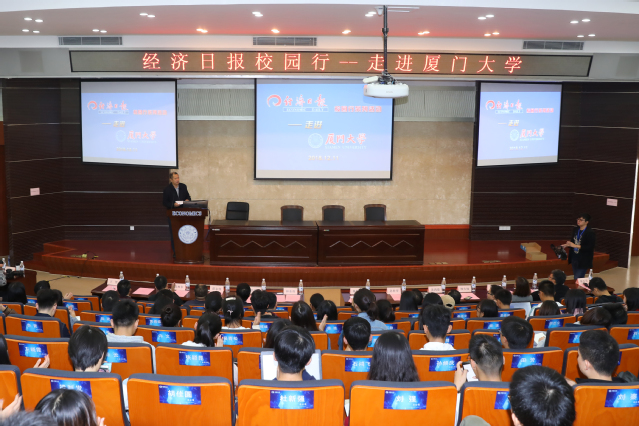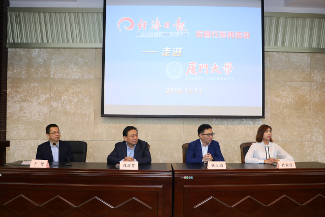 12月11日上午,“经济日报校园行”走进厦门大学活动在厦大经济学院N402报告厅举行。活动中,经济日报社一线编辑记者与我校师生面对面交流,探讨经济热点话题,讲述新闻采访故事和媒体融合发展心得。