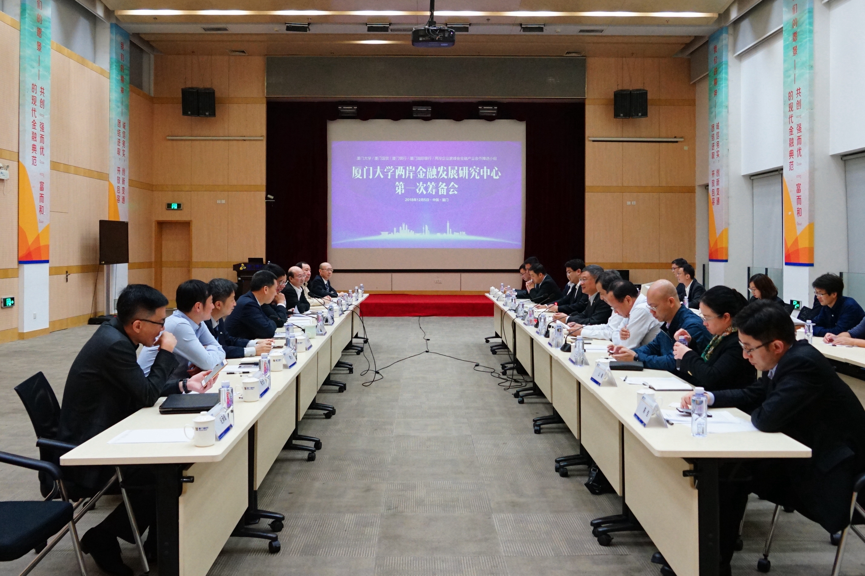 12月5日晚上,厦门大学两岸金融发展研究中心第一次筹备会议在在厦门银行总行正式举行。筹备会由李礼辉主持。国务院台湾事务办公室经济局,国家银保监会、厦门市金融办、厦门市银保监局、中心签约各方单位负责人以及大陆银行业驻台机构相关负责人等三十多人参加了筹备会议。国家银保监会、厦门大学经济学院、国台办代表依次就中心未来工作重心和合作模式发言。厦门市金融办、银保监局表示地方金融监管机构将全力支持中心相关工作。中心理事会商讨中心章程、会员管理办法等中心规章制度,明确中心后续的运营机制,同时筹建下一步具体工作计划,布置各方具体工作承接,确定中心第一期研究项目合作等事项。
