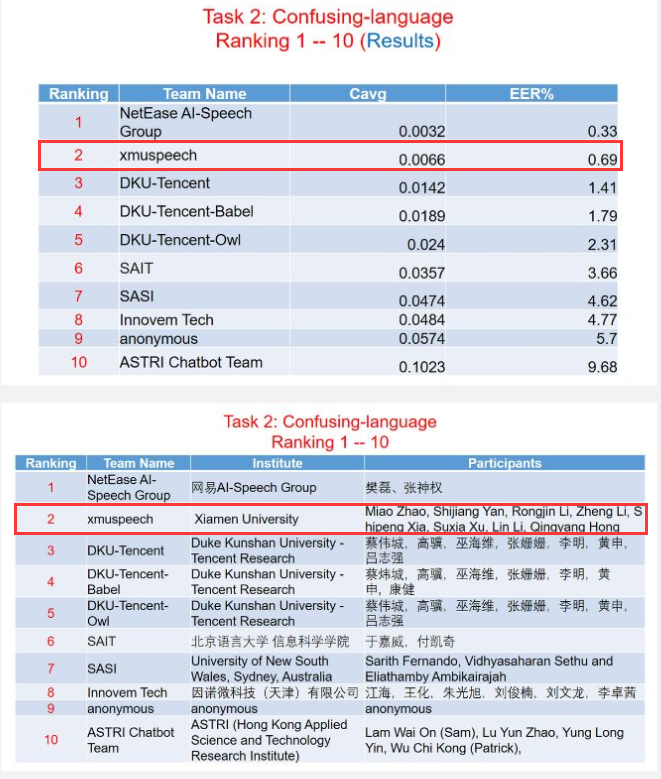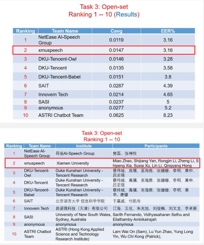 xmuspeech参赛团队来自我校智能语音课题组,由洪青阳副教授、李琳副教授、童峰教授指导,主要成员包括硕士研究生赵淼、李铮和颜世江等。