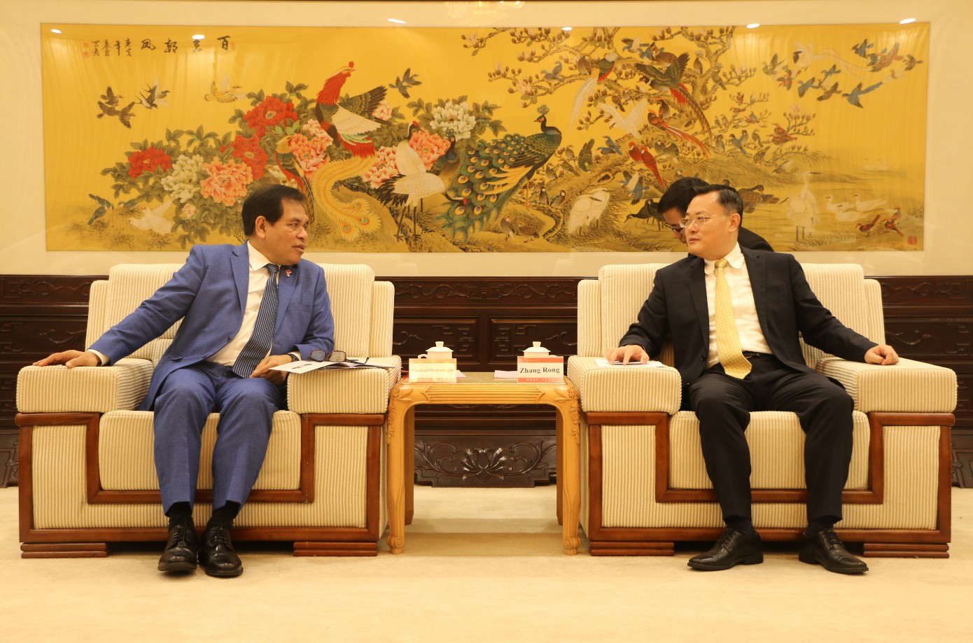 张荣代表学校对Djauhari Oratmangun阁下一行的到来表示欢迎。他简要介绍了我校办学历史、学科建设和综合实力,并重点介绍了我校优势学科在相关研究领域所取得的丰硕成果,以及在国际交流合作上,尤其与东南亚国家高校之间建立联系的情况。张荣表示,厦大与印尼的交流源远流长,希望通过大使的支持与推动,进一步促进厦大与印尼高校的友好合作和两国学生之间的交流互访,让更多的印尼留学生来校进行互换交流、攻读学位等,让更多的印尼学校和厦大在人才培养、学科建设等方面建立合作项目。