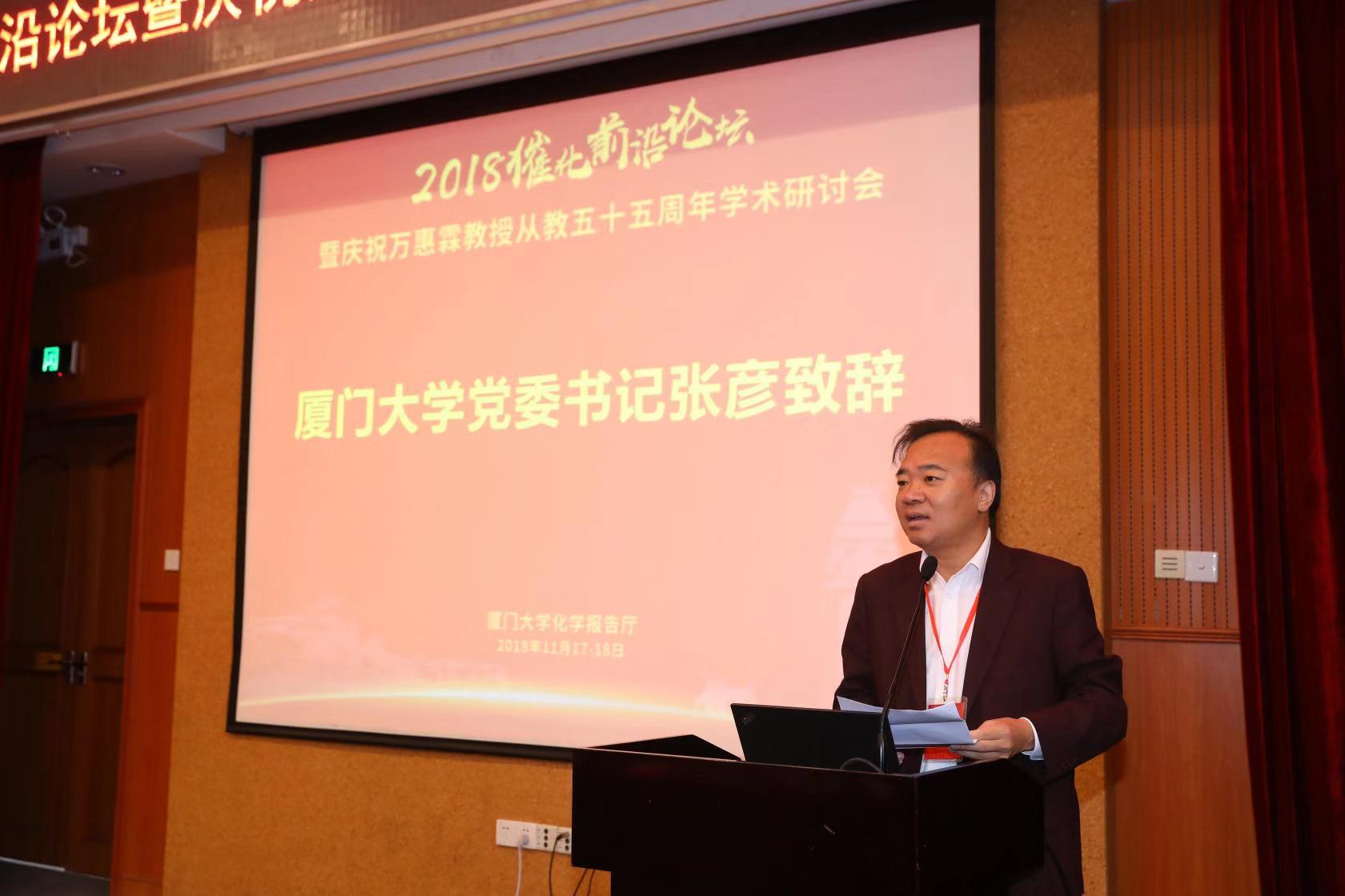 11月17日-18日,由厦门大学化学化工学院、固体表面物理化学国家重点实验室、厦门大学催化学科与工程研究所联合主办的2018催化前沿论坛暨庆祝万惠霖教授从教五十五周年学术研讨会在我校化学报告厅举行。本次论坛以催化前沿为主题,邀请了来自各全国高等院校、科研机构的院士、长江学者和国家杰出青年基金获得者等知名专家及业界人士出席,参会人数逾150人。
