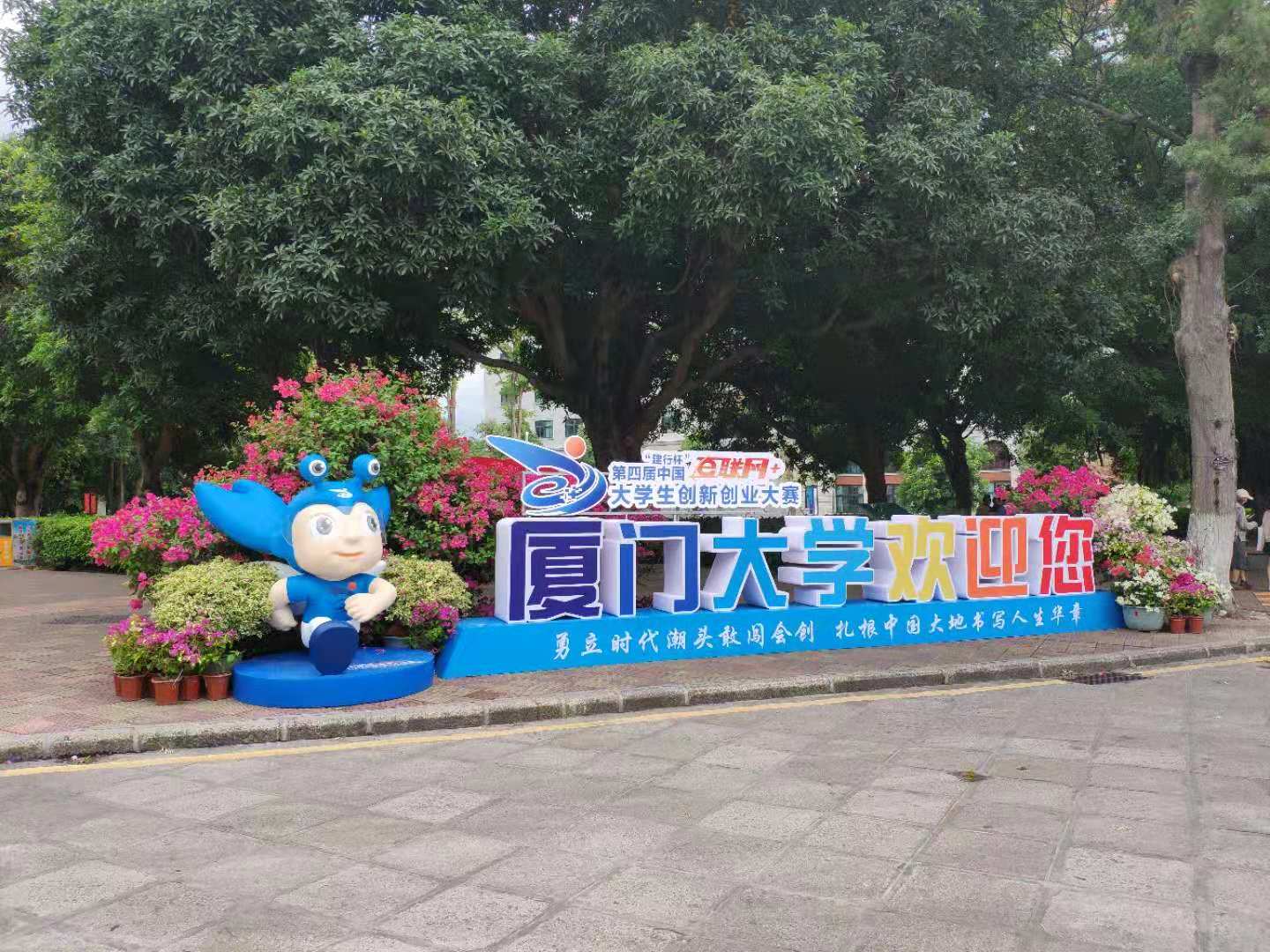 在校内,大赛的气氛也随着赛事的临近一天天浓郁起来,那些遍布校园内外的道旗、大赛广告牌、吉祥物“涌仔”形象、欢迎标语、大赛主题口号,以及环芙蓉湖区域的“大学生创客秀”……都在告诉着每一个人:盛会近了,大赛来了。为了办好本届大赛,广大厦大师生齐心协力,无私奉献,克服了种种困难,牺牲了暑假、中秋、国庆等假期,他们的努力,换来了今日厦大校园的花团锦簇、生意盎然。