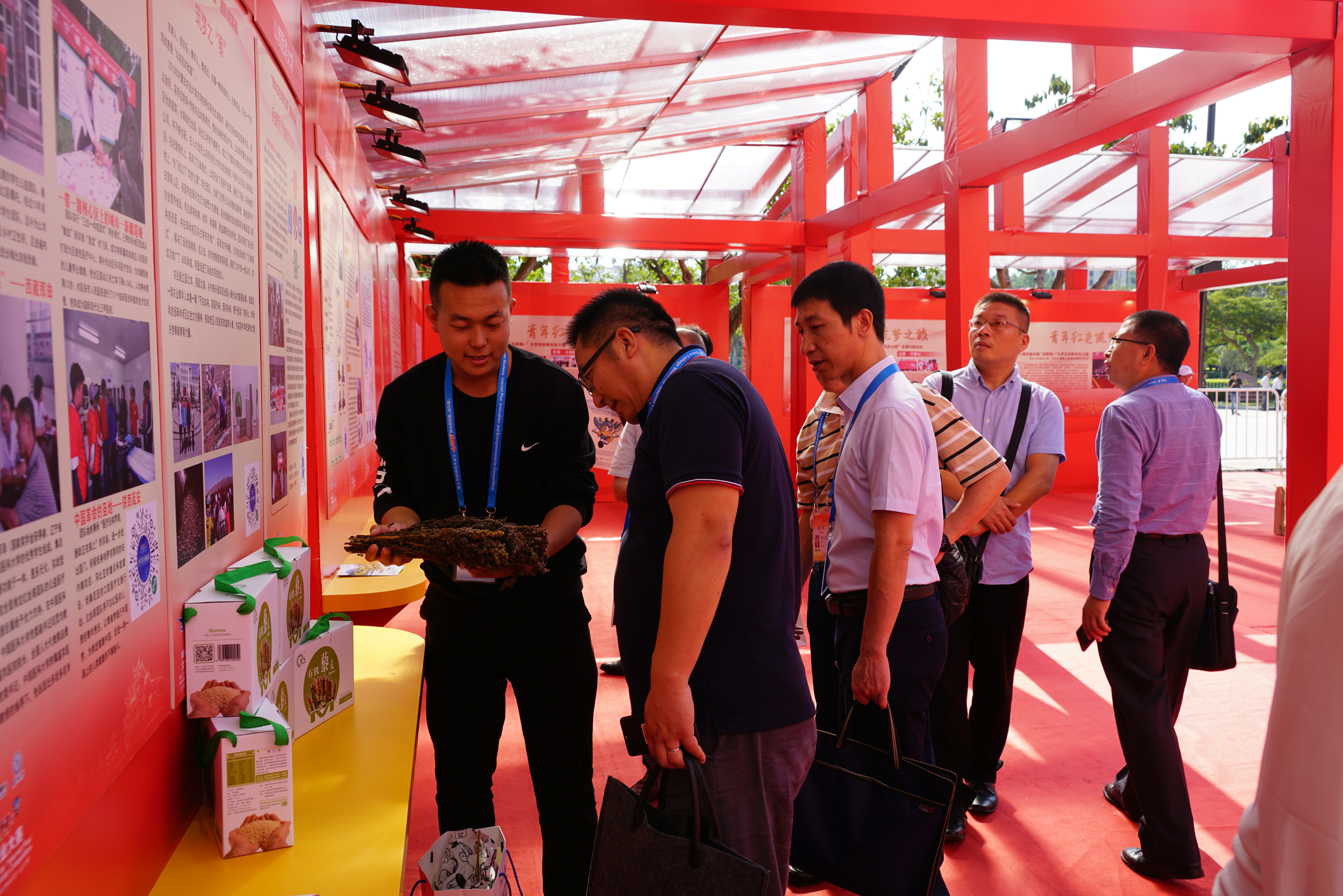 位于嘉庚广场的“青年红色筑梦之旅”项目展区,参展同学正在介绍项目成果。