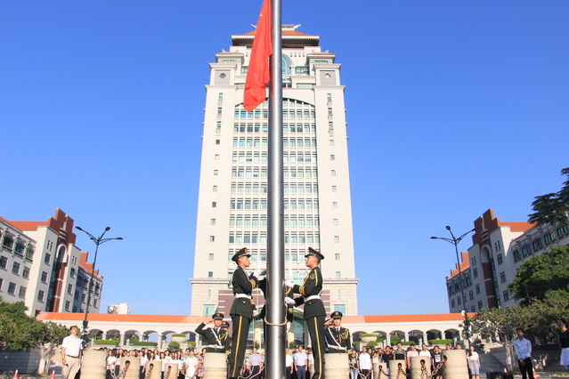 翔安校区300余名师生代表在校区主楼南广场也同步举行了升国旗仪式。