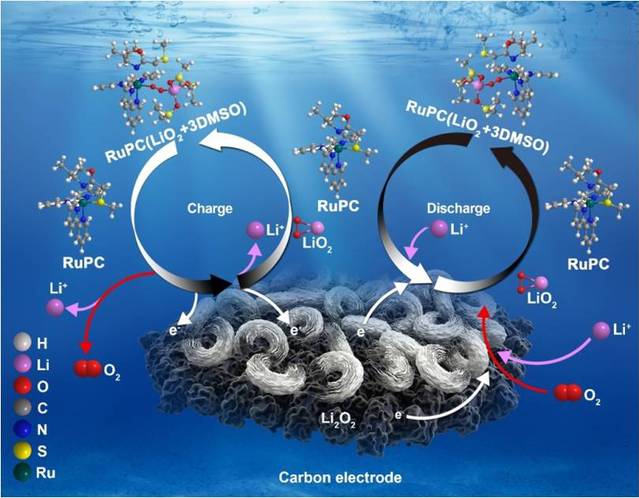 锂空电池分别使用空气中的氧气和金属锂作为正负极活性材料,具有极高的能量密度。但是,这一体系尚不能实现商业化的应用,其中一些关键问题未能解决。由于其正极活性材料是气体,使得电化学反应涉及气-液-固三相界面,电极过程十分复杂。与其它二次电池相比,空气电极需要考虑结构因素和催化因素。不仅要改善氧气电化学反应的动力学迟缓问题,还要考虑放电产物的驻留空间问题。董全峰教授课题组在前期开展了基于空气电极固相表面电催化研究,并结合电极结构方面的问题,构筑了有利于氧气发生反应的仿生开放式结构电极(Adv. Energy Mater.,2018, 8, 1800089; Energy Environ. Sci., 2012, 5, 9765–9768; ACS Catal.,2018, 8, 7983-7990)。