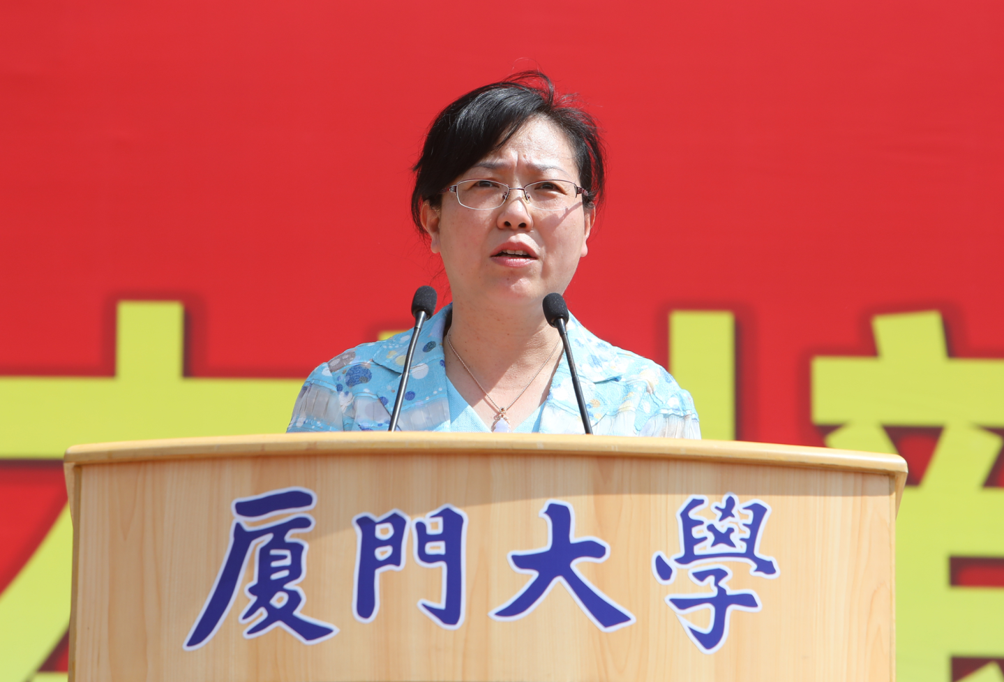 邓朝晖作军训动员报告,代表厦门大学向部队承训官兵表示热烈欢迎和崇高敬意,向全体参训同学表示亲切的问候。