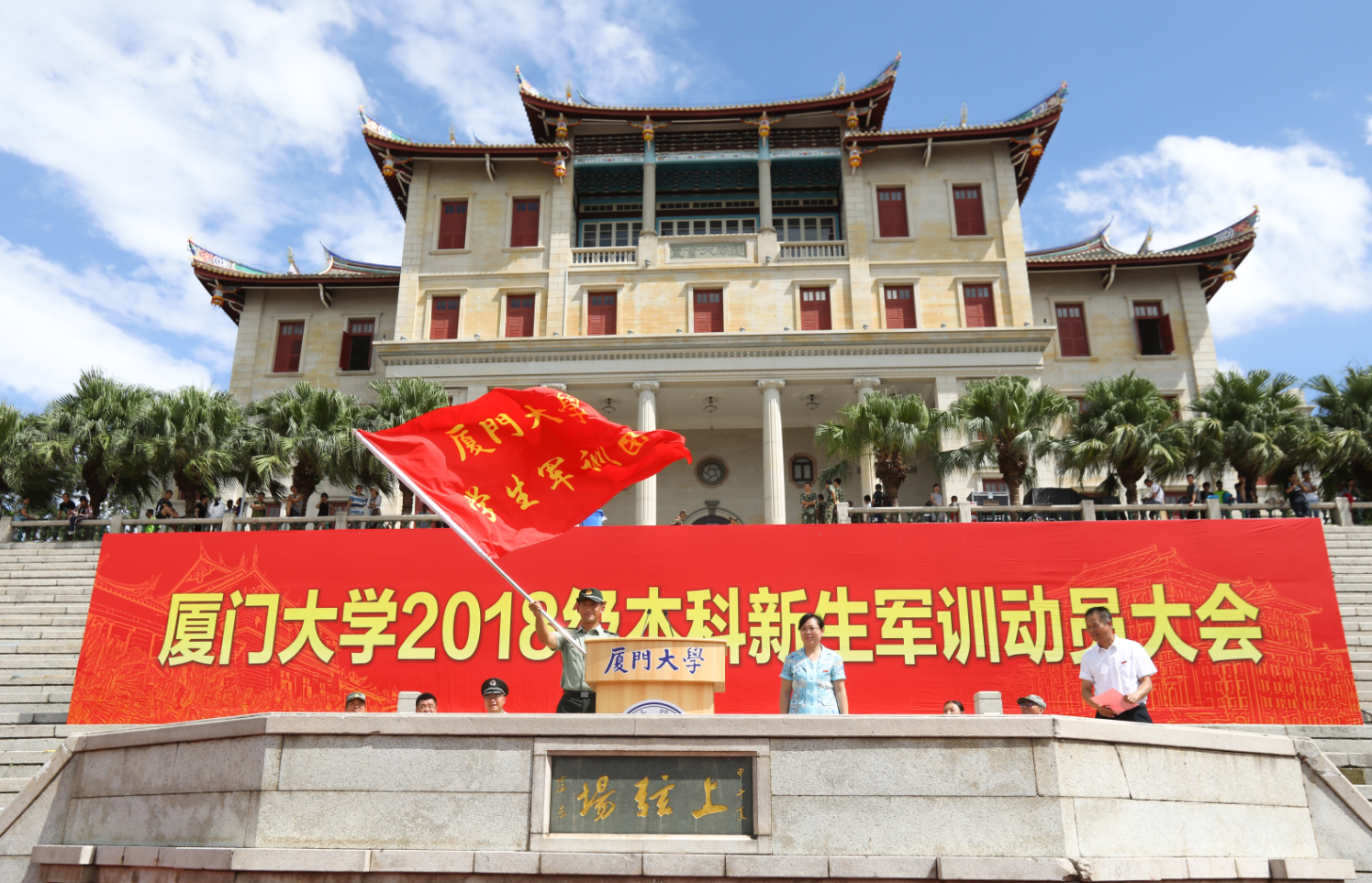 9月15日上午,2018级本科生新生军训动员大会在思明校区上弦场隆重举行,为期15天的军训正式拉开序幕。副校长邓朝晖,承训部队全体官兵,军训工作领导小组成员,学校有关部处负责人,各学院分管教学工作的副院长,分管学生工作的副书记,军训团教导员、指导员和全体参训同学等参加动员大会。教务处处长计国君主持动员大会。