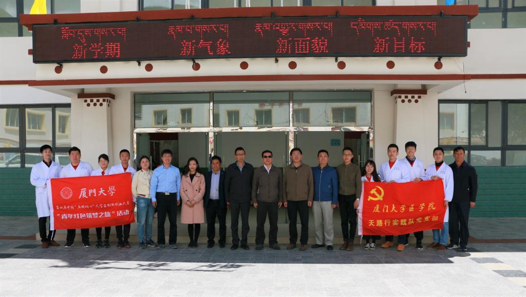 厦门大学医学院天路行实践队成立于2014年,由西藏定向本科生组成的队伍首次走进西藏开展走访、调研和义诊活动。4年来,队伍规模逐渐扩大,队员涵盖本科生、研究生,实践内容由走访调研转变为医学专业知识服务。2017年,配合厦门市政府组团式医疗援藏的布局,9名研究生来到西藏左贡,深入49个行政村和多所寺庙、学校,协助当地卫生系统开展为期一个月的包虫病筛查工作,累计筛查人数约9000人。2018年,天路行实践队8名研究生再度来到左贡,协助当地开展六病(高血压、糖尿病、慢行组织性肺气肿、肺结核、乙肝、大骨节病)筛查工作,用实际行动诠释责任担当,用真情奉献谱写藏汉深情。