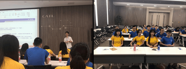 实践中,队员们还与“宁德时代”的两大核心部门锂电池研究院(RI)和动力电芯部(EVC)进行座谈交流,同时参观了他们的生产车间。通过参观交流让队员们明白了公司能持续成为国际一流能源科技创新公司的核心技术竞争力所在。在公司N工厂和测试验证中心,同学们实地看到了锂电池生产的详细过程和在电池投入使用前的严格的安全测试,深刻感受到了CATL公司精益求精的专业态度。锂电池生产过程中正负极配料搅拌制浆、正负极涂布、烘干、辊压、极片分割、模切、叠片、入壳的前段生产工艺,注液、封口焊接、塑封、检测、老化、检验、包装入库的后段生产工艺,以及振动、针刺、雨淋、高温烧火等安全测试,进一步加深了队员们对理论与实践相结合的认识。公司为队员们精心准备的有效沟通和时间管理的培训课程,让同学们体会到在学习和工作中有效的沟通和有效的时间管理非常重要,这是很好地完成学习工作任务的基础。公司的模拟面试也让同学们更明确自己未来的职业规划和努力方向。