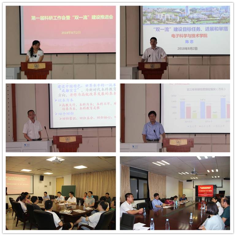 为贯彻落实学校第十一次党代会精神,扎实推进学院“双一流”建设,电子科学与技术学院于8月2日在海韵园召开学院第一届科研工作会暨“双一流”建设推进会。