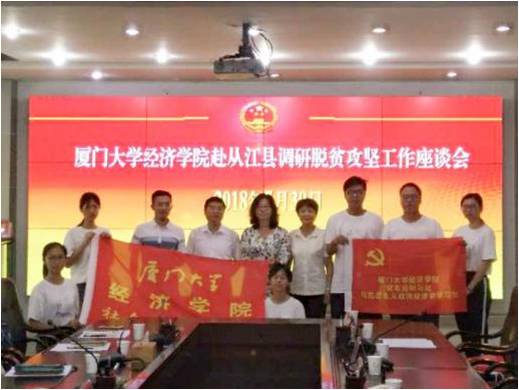 7月30日,为切实贯彻习近平主席“精准扶贫”引领脱贫攻坚的战略思想,落实习近平总书记给第三届中国“互联网+”大学生创新创业大赛“青年红色筑梦之旅”大学生重要回信精神,厦门大学经济学院党委副书记周蕾,辅导员徐惠聪,带队厦门大学经济学院“青年红色筑梦之旅”团队,前往贵州省从江县进行调研,与县政府召开脱贫攻坚座谈会,并签署“青年红色筑梦之旅”扶贫项目合作协议。