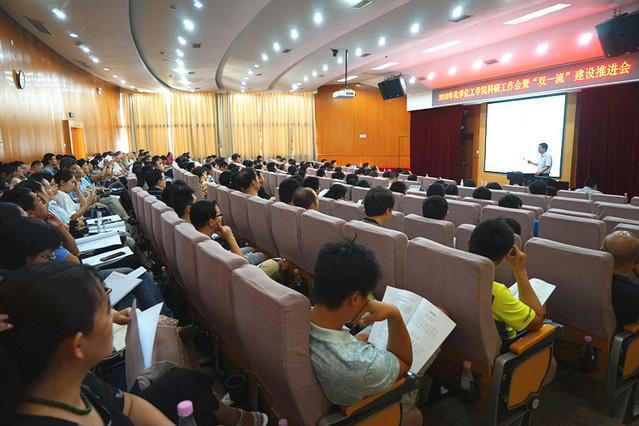 7月27日,化学化工学院召开2018年科研工作会暨“双一流”建设推进会。会议通过大会报告和分组讨论的形式,围绕学院“双一流”建设、师资队伍和课题组改革、人才培养和学科建设、科研及成果转化、专业团队及服务支撑队伍等方面议题进行深入探讨,对标“双一流”建设,认真总结、集思广益,为提升学科发展水平和科研管理服务能力献计献策。学院行政班子及全体在职教职员工近250人参加了本次会议。会议由化学化工学院副院长吕鑫教授主持。