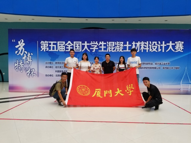 7月20日-22日,“苏博特”杯第五届全国大学生混凝土材料设计大赛在哈尔滨工业大学第二校区盛大举行。经过笔试、混凝土配合比设计和实际操作三个环节的激烈角逐,由厦门大学土木工程系2016级学生组建的两支代表队努力拼搏,发挥出色,取得了优异的成绩。由本科生战科江、谭锡、陈建组成的厦门大学二队和本科生李青莹、张春、石欣宇组成的厦门大学一队分别获得了团体二等奖第二名和团体三等奖第三名的优异成绩;土木工程系副教授薛昕荣获“优秀指导教师奖”。在此次竞赛的准备过程中,学校教务处和现代教育技术与实践训练中心给予了大力支持,学院领导高度重视,多次关心、指导参赛队伍的备战。