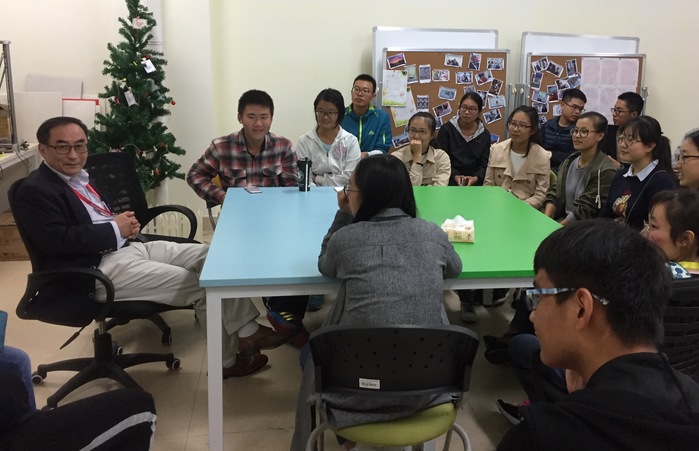 “跟学生一起吃饭主要是为了增进交流。”韩家淮说。他的助手,同时也是团队成员的张荧荧则将这看得更透彻,“韩老师‘硬要’陪大家吃饭,就是为了‘压迫’内向的同学跟他交流,聊什么都可以,包括最新的电影。”