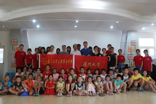 为带领学生深入学习贯彻习近平新时代中国特色社会主义思想和党的十九大精神,学习好、宣传好、贯彻好厦门大学第十一次党代会精神,用青春行动谱写奋斗新篇,公共事务学院开展了“高举旗帜跟党走,青春建功‘双一流’”教育实践活动。作为本次教育实践活动的重点项目,7月9日下午,“公共事务学院——前埔北社区‘阳光一夏’城市夏令营”在学院党委领导和厦门市莲前街道党工委、前埔北社区领导的共同见证下顺利启动。该夏令营是大学生暑期社会实践校级重点项目,也是公共事务学院落实与前埔北社区合作共建协议,联合开展“十九大代表进校园,青年学生进社区”系列活动的重要一环。