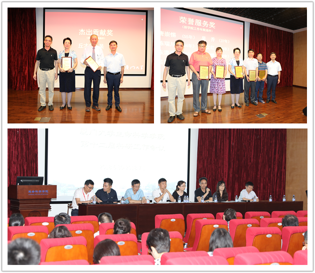 27名老师登台受颁“杰出贡献奖”、“科研奖”、“教学奖”等六项奖项,来自新加坡国立大学的丘才良教授获得了由生命科学学院颁发的“杰出贡献奖”以及由厦门大学生物医学学科创新引智基地颁发的“学科创新引智特殊贡献奖”。值得一提的是,学院今年新设“荣誉服务奖”,特别向在学院工作满30年以上的老师表示感恩和敬意。