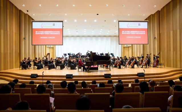 7月1日晚,厦门大学第三届国际钢琴艺术节开幕暨庆祝中国共产党诞辰97周年专场音乐会在科学艺术中心音乐厅举行。活动由艺术学院副院长陈舒华教授主持。本次钢琴艺术节邀请了国内外多名著名钢琴演奏家、钢琴教育家,他们将呈现11场精彩的音乐会,4场大师班课程,1场讲座及1场专题研讨会。
