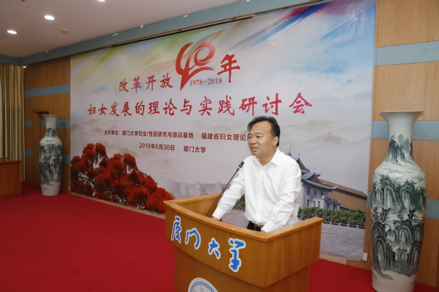 2018年6月30日,厦门大学妇女/性别研究与培训基地、福建省妇女理论研究会联合主办的“改革开放40年妇女发展的理论与实践”学术研讨会在厦门大学隆重举行。厦门大学党委书记张彦,中国妇女研究会秘书长、全国妇联妇女研究所所长刘亚玫,全国人大法工委民法室原副主任、中国法学会婚姻家庭法学研究会顾问扈纪华,北京大学党委副书记、中外妇女研究中心主任叶静漪,复旦大学党委副书记、妇女/性别研究与培训基地主任许征,厦门市妇联党组书记、主席吴亚汝,厦门大学党委副书记、纪委书记、校工会主席赖虹凯,中国妇女研究会副会长、福建省妇女理论研究会会长叶文振,厦门大学关工委主任、厦门市妇女人才研究会会长陈力文,以及中国妇女研究会、北京大学、中国人民大学、中国社科院、复旦大学、武汉大学、厦门市妇联等全国20多所高校和相关机构的领导、专家及学者百余人参加了研讨会。开幕式由厦门大学副校长、妇女/性别研究与培训基地主任詹心丽主持。