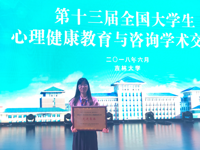大会对2015—2018年度在大学生心理健康教育与咨询方面做出突出成绩的集体和个人进行了表彰。我校心理咨询与教育中心获“全国大学生心理健康教育工作先进集体”荣誉称号,陈梅香老师被评为全国“大学生心理健康教育工作优秀工作者”。
