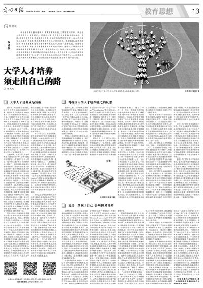 从世界高等教育发展史看,一流大学对世界的高等教育影响不仅仅在科研方面,更能体现引领世界潮流的,往往是教育思想的引领和与之相应的教育制度创新。其中典型的如牛津大学、剑桥大学的书院制,哈佛大学的选课制,德国柏林大学的教学与科研相结合。相比之下,我国自启动“211工程”和“985工程”以来,科学研究得到了空前重视,且收到了显著效果。但人才培养似乎始终是我国高等教育的短板。仅从当前国内一流大学招聘人才的要求来看,几乎都聚焦在具有留学背景的海归身上,尽管人们也在反思一味追求洋标准的负面影响,但从一个侧面反映了一流大学对自身人才培养的不满意,或者说不够自信。教育自信是文化自信的基础。今天当我国高等教育面临着的是全球化的大潮,伴随着中国将成为世界强国的未来,我国的高等教育要走出一条属于自己的路,一条具有世界影响力的路。实现这一目标的关键是大学要有自己的教育思想和适合自己的现代大学教育制度,其中最为迫切、列在首位的是大学须走出人才培养的历史惯性。这一历史任务不仅需要大学意识到自身的软肋和不足,还需要整个高等教育战线的自我觉醒,培养引领世界的人才必须跳出原有的人才培养体制与模式,这是我国大学人才培养走向世界的第一步。总之一句话:大学必须守住人才培养这个根。