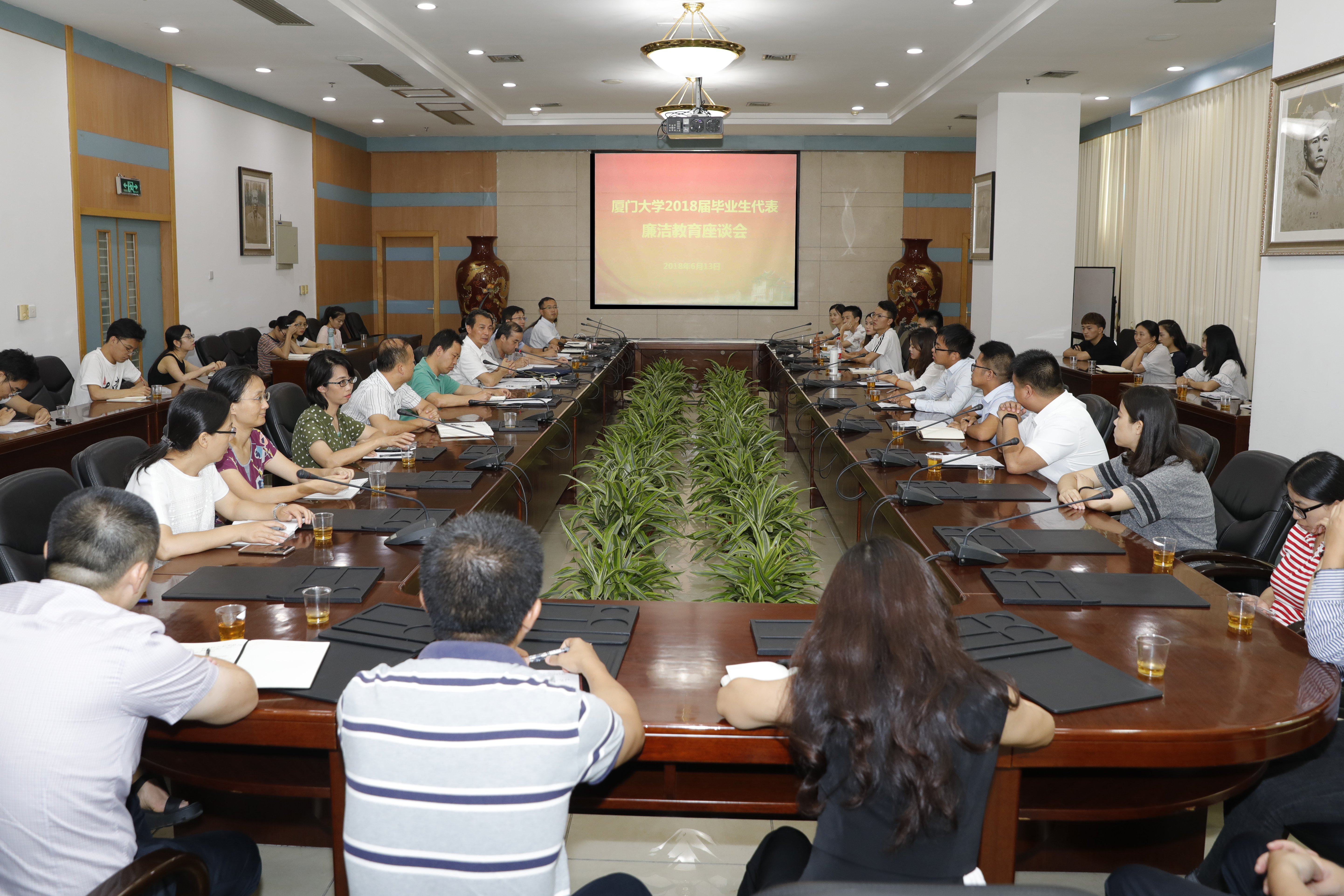6月13日下午,学校在颂恩楼215会议室举行2018届应届毕业生代表廉洁教育座谈会。利用临近毕业重要节点,将廉洁教育课作为离校前最后一课,让毕业生认清腐败的危害,走好人生社会的第一步。校党委副书记、纪委书记赖虹凯出席,纪委、组织部、宣传部、学生处、监察处、校团委等负责人以及本硕博应届毕业生代表参与座谈会。监察处处长陈东军主持座谈会。