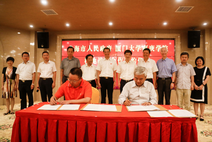 龙海市委书记郑隆松,市委副书记、市长何才成,市人大常委会主任郑明福,市政协主席高伟强,市委副书记王劲东,市委常委、组织部部长蔡国荣,市委常委、副市长林香娣和市直相关单位负责人;厦门大学党委副书记、纪委书记赖虹凯,嘉庚学院院长王瑞芳、党委书记林辉、副院长鲁同安、副院长刘暾东、院长助理王冬梅和相关学术单位、行政部门负责人参加了签约仪式。何才成和王瑞芳代表双方签署了协议。签约仪式由王劲东主持。