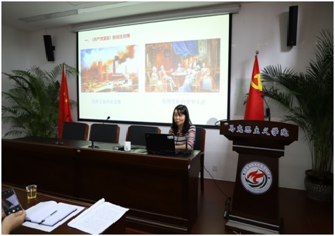 据悉,马克思主义学院作为正在建设中的全校教工党建示范点,高度重视政治学习大会的高质量举办,政治学习坚决不“走过场”,力求学有所获、学有所用。目前,政治学习正探索尝试“1+N”模式,党委书记领学,教师结合自身马克思主义理论研究专长深入研习,并在学习大会上进行展示和分享,营造思想政治理论课教师“人人讲党课,全院齐学习”的浓厚氛围。近年来,以读书会为活动载体,马克思主义学院师生坚持研读《共产党宣言》《资本论》等经典著作已蔚然成风。