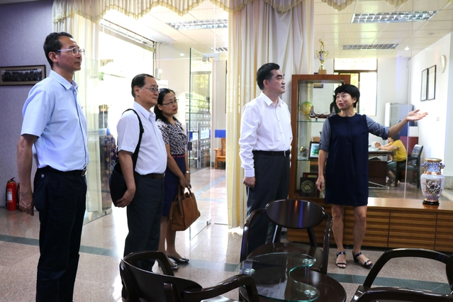 赖虹凯陪同邓家基一行参访台湾研究院。在一楼展厅,台研院党委书记曾坤瑜为邓家基一行详细介绍厦门大学台湾研究院暨两岸关系和平发展协同创新中心建设情况,并着重介绍了厦大台研院在台湾研究及对台交流中所取得的丰硕成果。