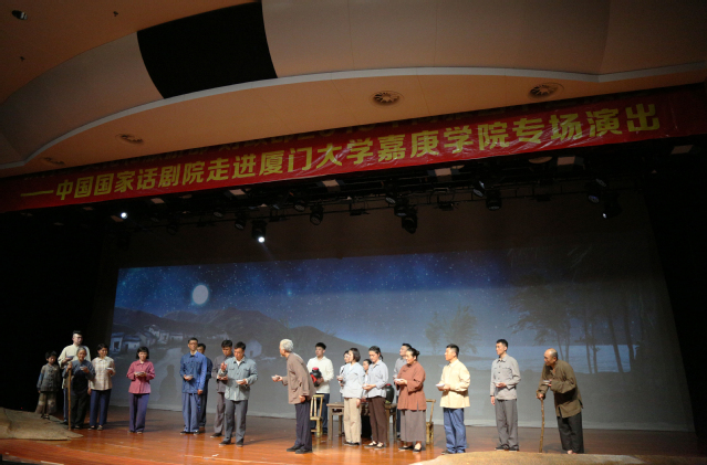 5月31日晚,国家话剧院《谷文昌》话剧组走进漳州校区,在主楼3号楼二楼报告厅为校区师生带来了既精彩又感人的专场演出。该演出是2018年教育部、文化和旅游部、财政部高雅艺术进校园系列活动在漳州地区高校的首场演出,由厦门大学嘉庚学院承办。全国政协委员、国家话剧院院长周予援,我校漳州校区党工委(管委会)、嘉庚学院党政负责人与近500名师生共同观看了此次演出,现场反响十分热烈。