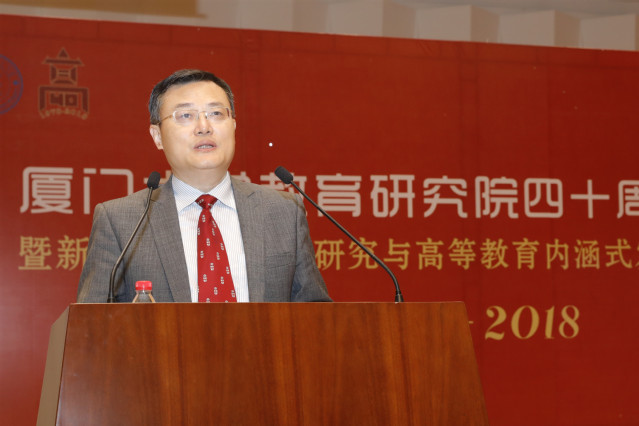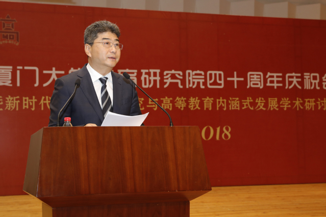 华中科技大学教育科学研究院院长、院友代表张应强教授发表讲话。厦门大学教育研究院沐浴改革开放春风,开创我国高等教育研究的先河,对我国高等教育的研究与发展作出了重大贡献。