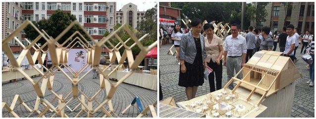 5月9日中午,由建筑与土木工程学院主办的第六届建筑文化节成果展在三家村广场顺利举行。至此,历时一个半月的建筑文化节完美落幕。此次文化节以“建行天下,筑梦未来”为主题,倡导大家以匠心会建筑,融慧心于建筑,深刻地学习和感受建筑之美。校领导、校党委常委邓朝晖,校长助理、基建处处长张建霖,校团委书记、药学院党委书记陈怀锋,人文学院党委副书记黄宇霞,学生处副处长王洁松,建筑与土木工程学院党委书记刘梅,院长、党委副书记王绍森,学工组全体老师及学院师生等近一百人出席活动。