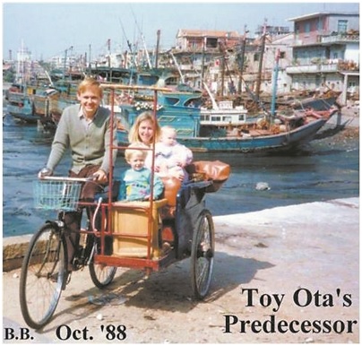 上世纪80年代,潘维廉买到一辆三轮车,经常骑车带着家人在厦门观光。为此,他还向政府部门写了保证书。