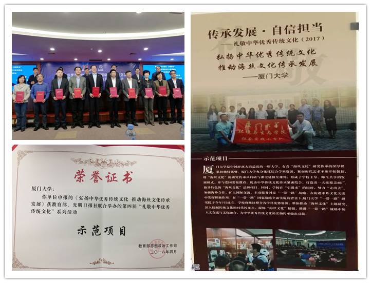 4月26日,第三届、第四届“礼敬中华优秀传统文化”系列活动成果展示交流会暨全国高校博物馆育人联盟第五次会员大会在江南大学召开。我校申报的《弘扬中华优秀传统文化 推动海丝文化传承发展》获评第四届“礼敬中华优秀传统文化”系列活动十佳示范项目。校党委宣传部副部长楼红英代表学校获颁证书。此前,我校申报的“阅读传统经典•品味书香生活”系列活动获第二届“礼敬中华优秀传统文化”系列活动十佳示范项目;“在奉献中将爱国融入南强血脉”获第三届“礼敬中华优秀传统文化”系列活动“特色展示项目奖”,这是我校第三次获奖。