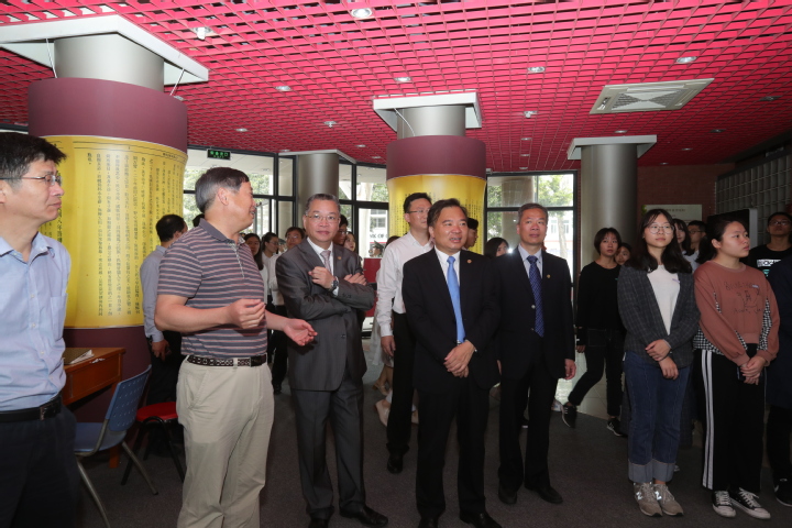 在翔安校区德旺图书馆北大厅,校长助理、翔安校区党工委书记、管委会主任陈光也与师生们一同参观了展览。