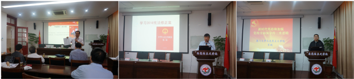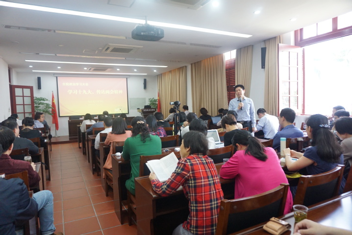 这样的互动在会上出现了多次。全体思政课教师定期参加集中政治理论学习,是马克思主义学院党委的一贯做法。这次学习会上新增了互动分享环节,激发和调动了台下老师们的兴趣和思考,抬头率明显提高。更让人耳目一新的是,此次学习会邀请了三位“嘉宾”作主题发言,他们分别是贺东航教授、罗文副教授,以及肖斌副教授。三位专家各自结合自身专业研究所长,为在场的师生奉献了满满的“干货”。