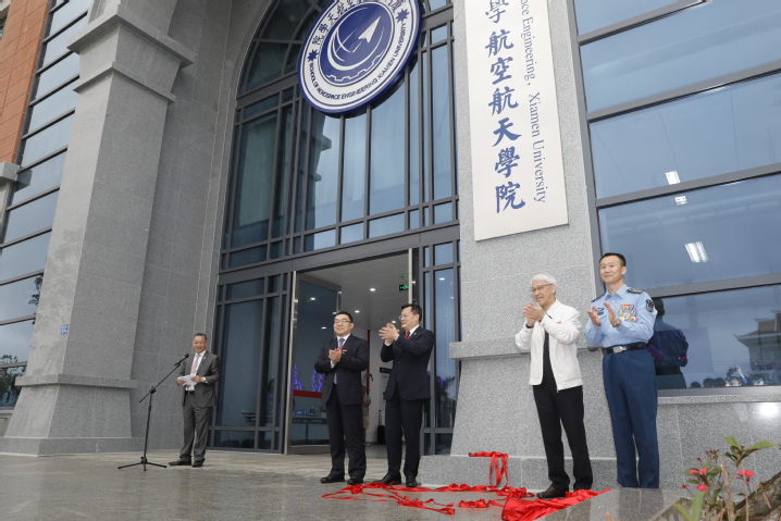 张荣校长、尹泽勇院士、李中华大校、李正林先生共同为厦门大学航空航天学院大楼揭牌。