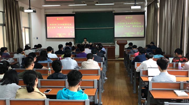 3月29日下午,经济学院和王亚南经济研究院(以下简称“两院”)学习全国两会精神报告会在经济楼D235举行,第十三届全国人大代表、厦门大学经济学院金融系教授潘越向两院的党政领导班子成员、党委委员、支部书记、教师代表和学生代表传达两会精神。报告会由学院党委书记雷根强主持。