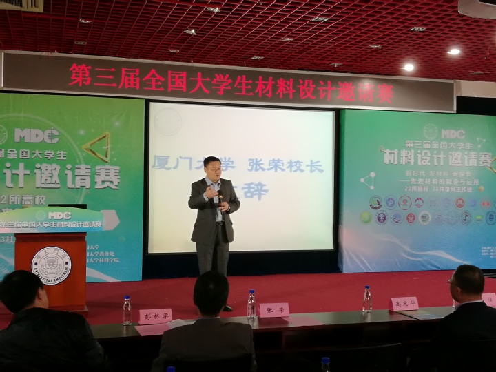 张荣指出,厦门大学材料学院虽然建院时间不长,但是在国内高校中、在国际上一直处于比较重要的位置。这次比赛给同学们提供了学习和提高的机会,推动了材料学科的发展,同时也是厦门大学展示教学、研究成果的平台。希望同学们利用这次参赛机会多沟通、多交流、多启发。