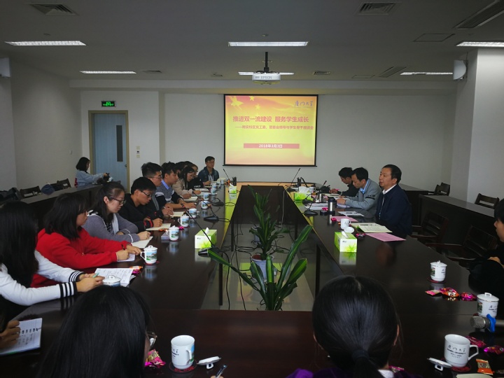 座谈会主要围绕如何“推进‘双一流’建设,服务学生成长”展开了热烈的讨论。各学生机构代表踊跃发言,提出自己在学校中所遇到的各种各样的问题和建议。校研究生委员会翔安校区分会主席陈豆豆同学提出了希望加强思明和翔安校区的双向交流,为翔安校区提供更多的教学和交通资源,完善学生干部的奖励激励机制。校学生会翔安校区分会主席庞靖龙同学从活动举办、学生权益和人才培养三个方面对翔安校区推进“双一流”建设提出建议。校社会实践指导中心翔安校区分中心主任黄俊荣同学希望增加境外社会实践项目,加强校企合作,深化产学研,培养一流人才等等。