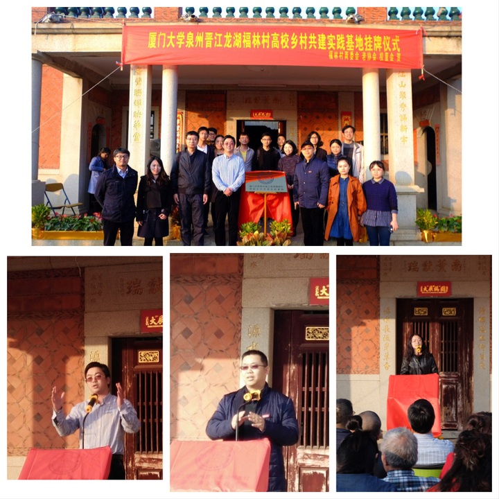 近日,“厦门大学泉州晋江龙湖福林村高校乡村共建实践基地”挂牌仪式在中国传统村落、福建省历史文化名村福林村成功举行。这是厦门大学在泉州市与国家级传统村落结对共建的首例。此次共建正是契合了党的十九大报告提出的“实施乡村振兴战略”,为乡村发展描绘宏伟蓝图。乡村发展与科研创新的相互协作,更好地整合社会资源,快速转化科研成果,培养优秀创新型人才服务乡村,探索乡村发展的新模式。