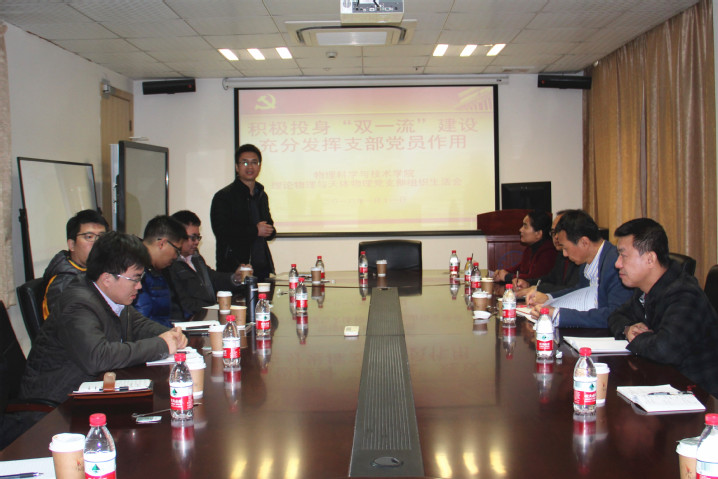 1月11日下午,物理科学与技术学院理论物理与天体物理党支部组织党员在物理航空大楼307会议室开展了专题为“积极投身‘双一流’建设,充分发挥支部党员作用”组织生活会,校党委副书记、纪委书记赖虹凯参加了本次支部活动。