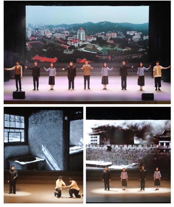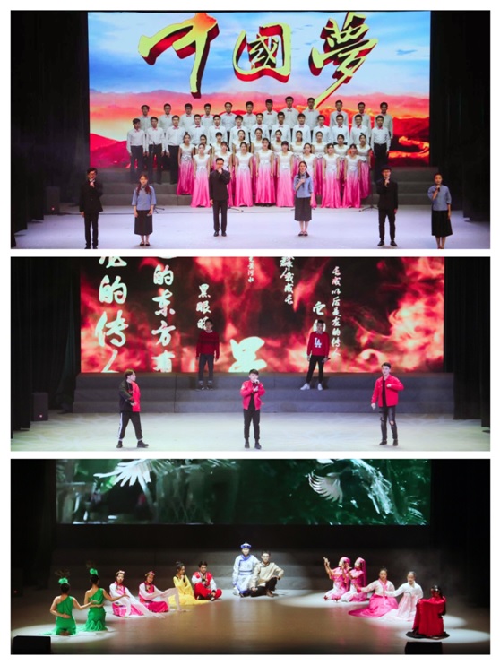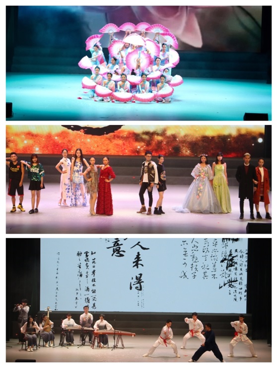 整台晚会,通过各个文艺团体学生原创、老师从策划到演出全程提供指导,保证学生的亲身参与的同时,充分融合优秀传统文化特色、歌颂主旋律、传播正能量,提升文艺作品的品位和格调。民乐队的《兰亭序》把太极、武术、民乐演奏、中国画等传统文化元素有机融合起来,学生在演绎过程中提升了文化自信;原创诗剧《亚南故事》,联合学院经济学专业老师一起参与策划指导的作品,较好的诠释了亚南精神,学生在排练、演出的过程中受益良多。