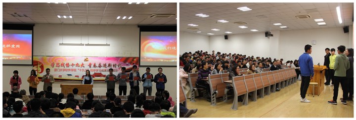 “学而不思则罔,思而不学则殆”,学习的过程也是思考的过程。各支部在展示中纷纷提到,在学习的过程中,同学们积极撰写心得体会,表示要从自身做起,深入学习贯彻十九大精神。各党团支部还通过不同的学习方式,增强同学们对十九大的理解和感悟:法制交流会让大家了解了依法治国的重要性,感受到法律的权威和正义;模拟全国人民代表大会让同学们深入思考中国政治制度的优越性。除此之外,同学们还通过作品创作表达对十九大的理解,在诗歌创作大赛和网络文化作品创作过程中,以不同的视角,采用不同的方式如微电影、视频、H5页面、网文等作品表达了自己对十九大精神的感知,将党的理论知识和科学文化结合起来,做到学而信、学而用、学而行。