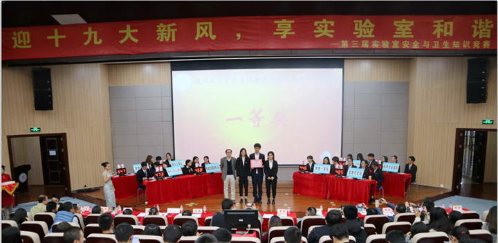 厦门大学第三届实验室安全与卫生知识竞赛决赛于12月14日19:30在德旺图书馆报告厅顺利开展。中科院院士、副校长韩家淮教授,学生处、教务处、实验室与设备管理办公室、校团委、翔安校区团工委等相关负责人,以及翔安校区各学院党委副书记、团干辅导员出席了活动。