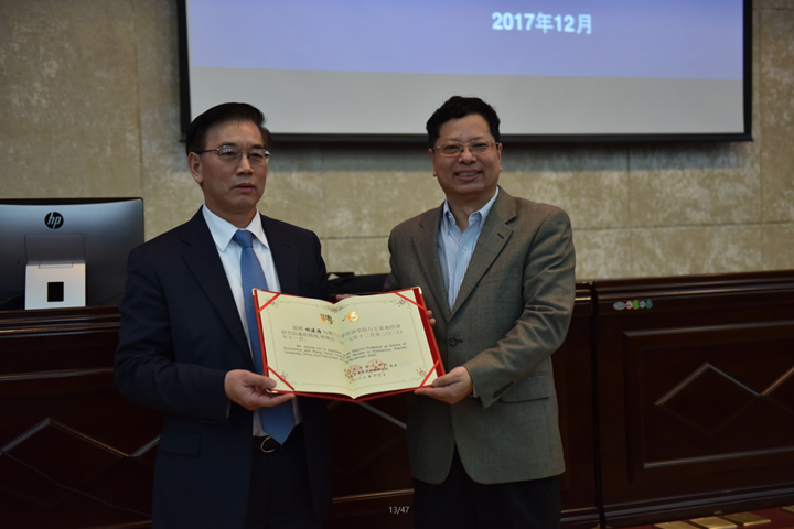 讲座由厦门大学特聘教授、经济学院副院长朱孟楠主持,美国康奈尔大学与厦门大学教授洪永淼为林建海秘书长颁授南强学术讲座纪念牌、以及厦门大学经济学院与王亚南经济研究院兼职教授荣誉证书、富邦金融与产业论坛讲座纪念牌。