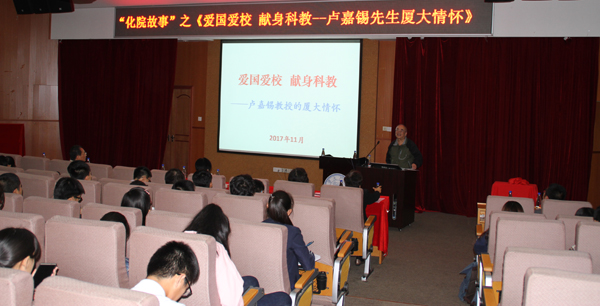 颁奖结束后,应学院“化院故事”讲坛邀请,卢咸池教授为在场师生做《爱国爱校 献身科学——卢嘉锡先生的厦大情怀》的报告,深情回忆并生动讲述了父亲卢嘉锡先生在厦大求学和工作的故事。