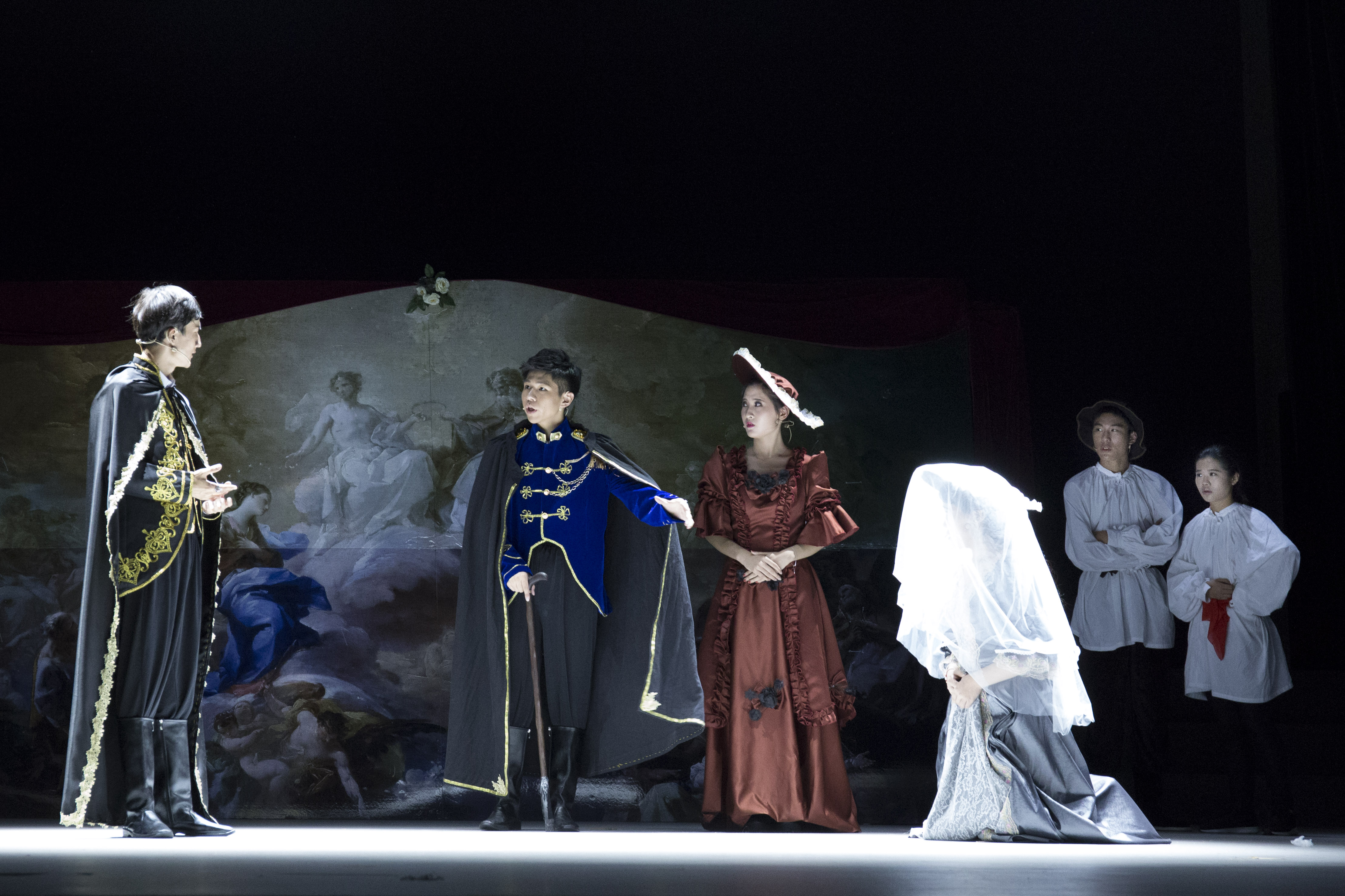 莎士比亚剧本中精深但晦涩的台词为表演增加了难度,但得益于长时间的排练,演员们在演出当晚用纯正的口音和深情的吟诵完美还原了角色的长段对话和独白,共同打造出一台高质量的戏剧作品,展现出厦大学子不凡的英语水平和超群的人文素养。演员们结合自身理解对人物神态动作细致入微的临摹,则体现了他们对善与恶的评判、对人性和法制冲突的深刻思考。更让人眼前一亮的是,剧中庄肃的神父托马斯、张狂的死刑犯巴那迪以及油嘴滑舌的卢西奥均由女演员反串出演。对这些性格迥异的男性角色的完美展现,体现了演员们精湛的演技和对角色的深入理解。
