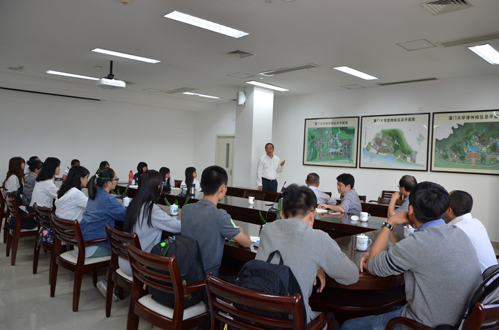 10月31日下午,校长助理、翔安校区党工委书记、管委会主任陈光,翔安校区党工委副书记、管委会副主任高忠华,与马来西亚分校中医班的15位学生代表在主楼群三号楼909会议室座谈。来自马来西亚分校中医专业的同学们将在翔安校区进行一个学期的学习,更近距离地接触中华文化和中医精髓。陈光首先热情地欢迎他们的到来,体贴地询问同学们初入翔安校区的感受。他还为大家详细地介绍了我校源远流长的历史背景,以及思明校区、漳州校区、翔安校区和马来西亚分校的功能定位。这15位学生代表中5位是中国学生、10位是来自马来西亚和印度尼西亚的华裔学生。与会同学都畅所欲言、气氛热烈。同学们不禁赞叹厦门大学深厚的历史文化积淀,对翔安校区优美的校园环境和舒适的住宿条件给予了很高的评价,对免费大米与可口丰富的菜品赞不绝口,同时也提出在学习过程中遇到的困难、疑惑以及对教学、住宿、饮食等校园管理工作的意见和建议。校区领导详细记录、仔细倾听,现场进行了详尽的解答,并表示会后将对同学们提出的问题进一步研究解决。在座老师还鼓励大家要将中医学传播到世界的每一个角落,将中华文化带出国门,走向世界。座谈会在融洽的氛围中落下帷幕,与会师生进行了合影留念。