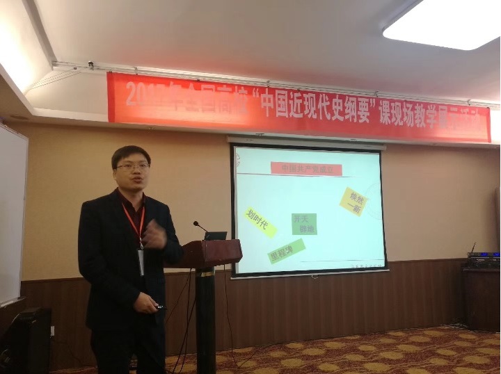 我校马克思主义学院中国近现代教研部佳宏伟副教授代表我省中国近现代史纲要课程教师,以《新形势、新信仰、新组织、新革命——中国共产党成立之“新”意义》为题参加现场教学技能展示。佳宏伟老师围绕着中国共产党的成立这一重大历史事件,从价值逻辑、文本逻辑和事实逻辑三个层面,以中国共产党成立所展现“四新”(“形势”之新、“构成”之新、“信仰”之新、“方式”之新)为中心进行展示,整个展示获得评委们肯定,认为整个课程展示有思考、有研究、有高度,将教材内容很好转化成教学内容,做到教材与教学有机统一、价值引领与学术思考的有机结合。