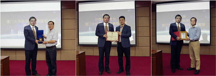 10月30日下午,中国银行业协会首席经济学家、香港交易所首席中国经济学家、中国“十三五”规划专家委员会委员巴曙松应厦门大学管理学院、厦门大学金圆研究院的邀请,做客第848期厦门大学南强学术讲座,带来题为“为人民币资产定价:人民币融入全球货币体系带来变革新动力”的精彩演讲。厦门大学党委副书记、副校长李建发教授颁发了“南强讲座”纪念牌。厦门大学管理学院院长叶建明教授、厦门大学金圆研究院院长屈文洲教授分别授予了巴曙松教授“厦门大学管理学院兼职教授”、“厦门大学金圆研究院客座教授”的牌匾。
